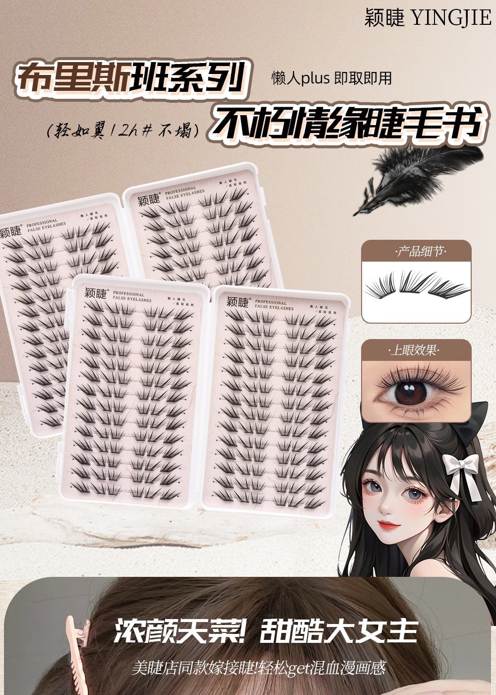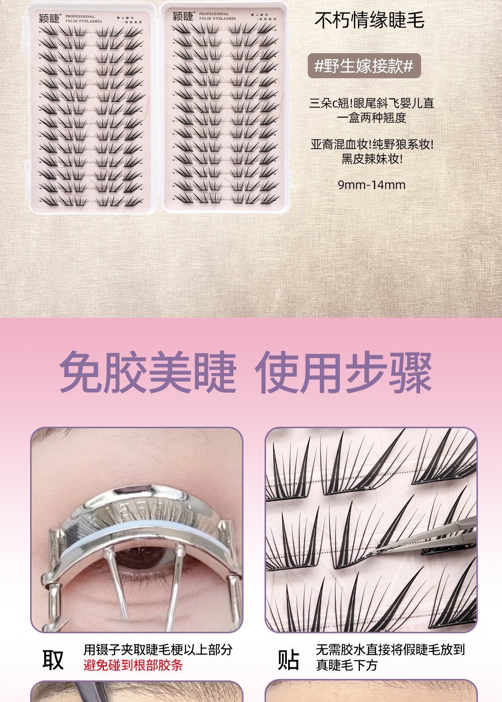 Free-apply false eyelashes with built-in eyeliner
